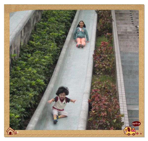 還好仍有許多不同的溜滑梯可以讓豆豆玩
