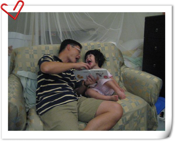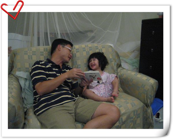 今晚豆豆洗完澡後,爸爸抓緊跟豆豆相處的機會要念故事書給豆豆聽
