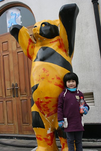 記得第一次跟熊熊拍照時,身高大約才到熊熊肚子下方的高度