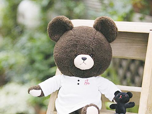 然後讀書熊起來之後換了衣服,他抱著他的朋友迷你熊熊到我的身邊說迷你熊來了,