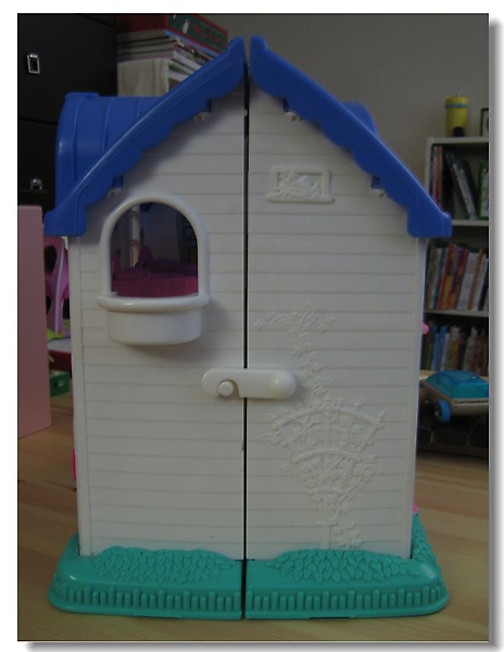 豆豆收這個玩具時是先將房子合起來,再將公仔與傢俱由閣樓的窗戶丟入房子內
