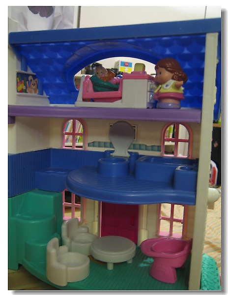 一歲九個月的柚子玩這個娃娃屋時,常常拿著媽媽公仔去馬桶尿尿