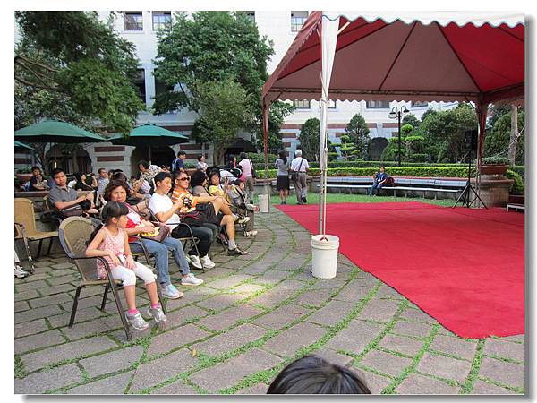 豆在中庭等著看表演