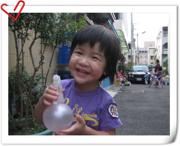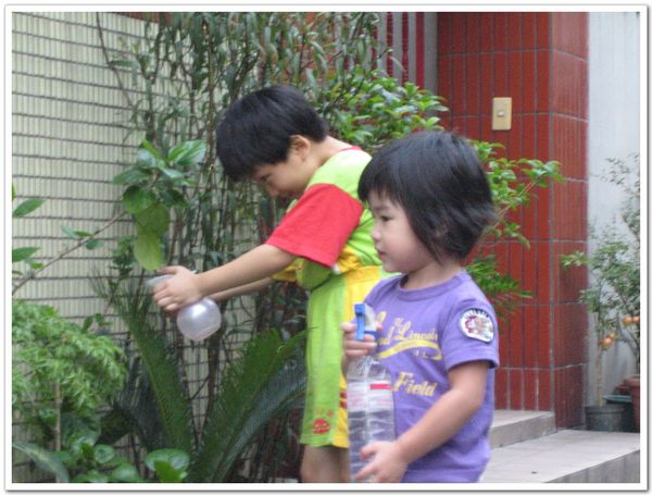 豆豆最喜歡跟鄰居的懷恩哥哥玩噴噴水的遊戲