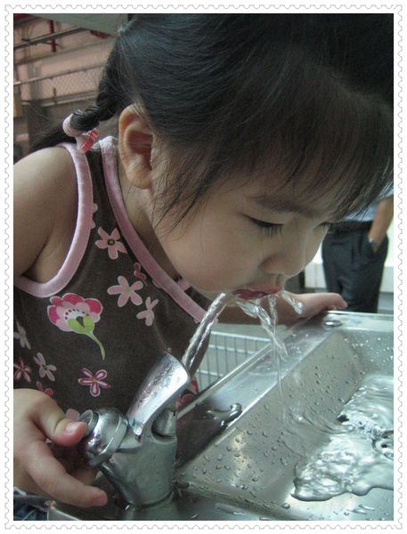 她就可以喝到冰冰的水,而且還是用那種噴水池一樣的喝水方式